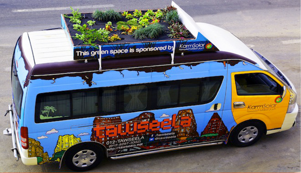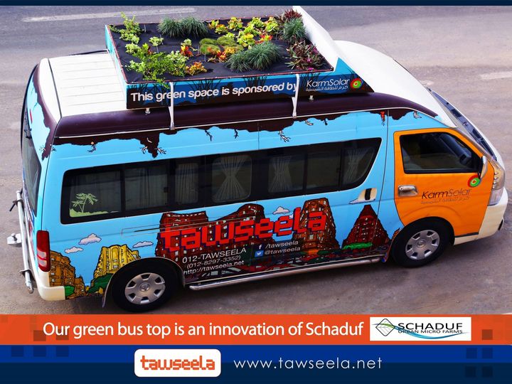 في عام 2016، تعاونت شركة شادوف مع كرم سولار لإنشاء أول مزرعة على سطح حافلة في مصر. هدف المشروع كان توضيح كيف يمكن تكييف الزراعة الحضرية في أماكن غير تقليدية ومتنقلة، وإبراز طرق مبتكرة لدمج الزراعة في الحياة اليومية.