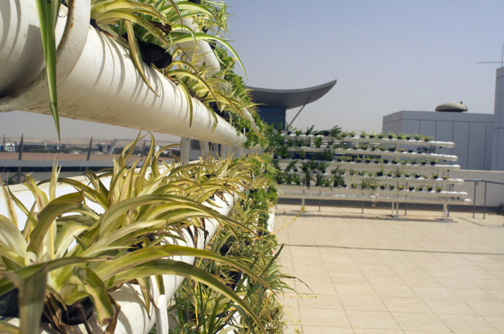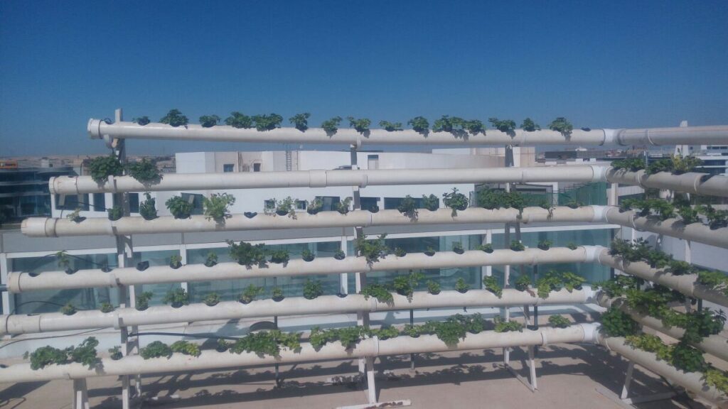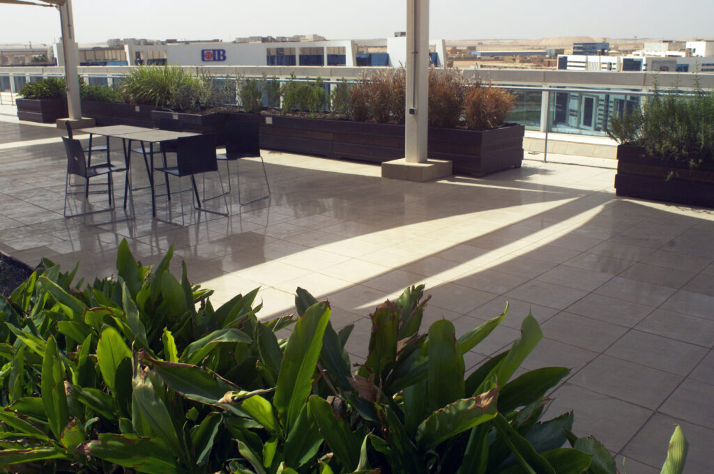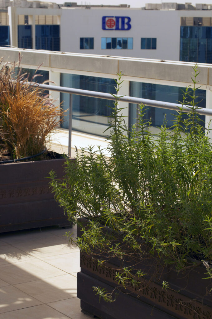 In collaboration with Commercial International Bank (CIB), Schaduf implemented a rooftop farming project aimed at enhancing urban agriculture and promoting environmental sustainability. The project focused on transforming unused rooftop space into a productive farming system using advanced water recycling techniques and smart irrigation solutions.